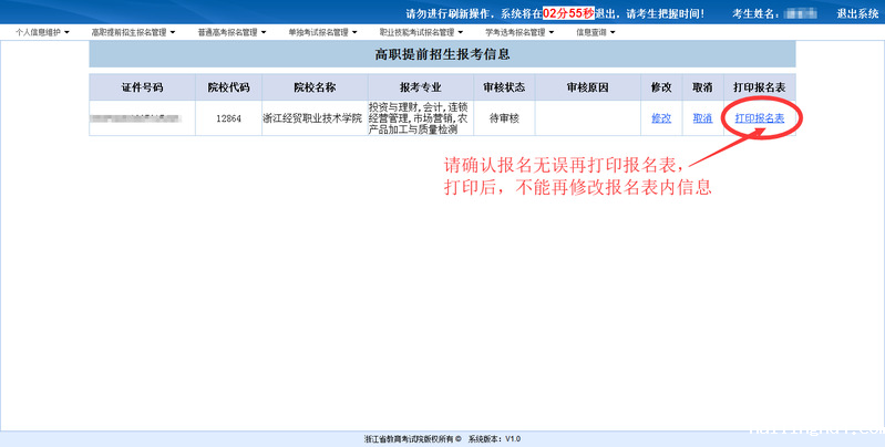 提醒:请确认报名无误再下载或打印报名表,打印后,不能再修改报名表内信息。