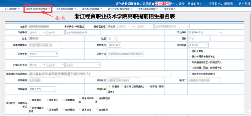 1、点击以上网址链接,直接显示:“浙江经贸职业技术学院华体汇app下载入口官网苹果报名表”