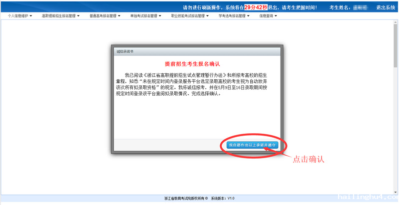 浙江经贸职业技术学院2018年提前招生考生诚信承诺书.doc