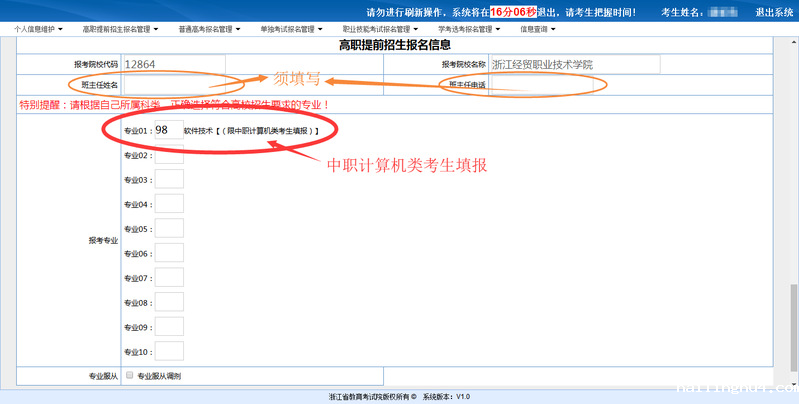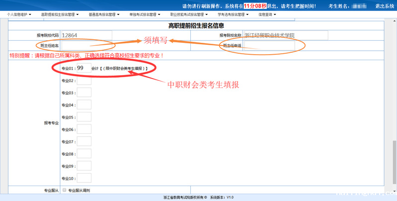 (2)、中职毕业生填报方式(计算机类、财会类):