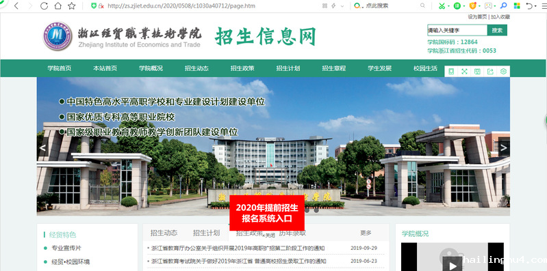 欢迎报考浙江经贸职业技术学院2020年提前招生,请认真仔细阅读我校提前招生章程,相关链接://www.hailinghu4.com/2020/0508/c1030a40712/page.htm。