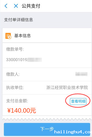 4、考生核对确认缴费信息,无误后,点击“下一步”,直至缴费完成。