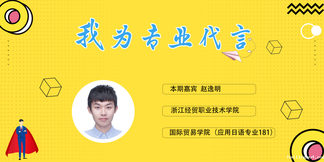 通过提前招生让我有幸来到浙经贸度过了美好的三年。在校期间,我积极参与专业相关竞赛,取得了不错的成绩并通过日语N1级考试。在《日本文化史》这门课里老师给我印象最深的一句话是”学日语不仅是学语言,还要学习它的文化与历史才能真正品味其魅力。“我也朝着这一目标不断前进,目前我已有幸通过自身努力和学校推荐,进入理想的日本爱知东邦大学深造,希望学弟学妹能对语言学习感兴趣,在日本传播中国文化,讲好中国故事。