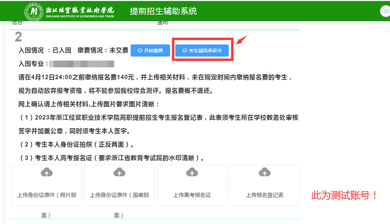 【温馨提醒】缴费之前请务必核对姓名是否本人,缴费之后刷新“提前招生辅助系统”,显示“已缴费”,表示缴费成功。