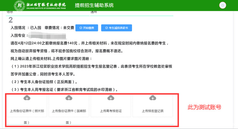 入围综合测评资格的考生请在4月12日24:00前登录浙江经贸职业技术学院招生信息网(//www.hailinghu4.com)进行网上确认和网上缴费。报名费标准为140元/人。若在规定时间内未缴纳报名费的考生视为自动放弃,不得参加综合测评考试。完成缴费但未参加综合测评的考生,报名费概不退还。