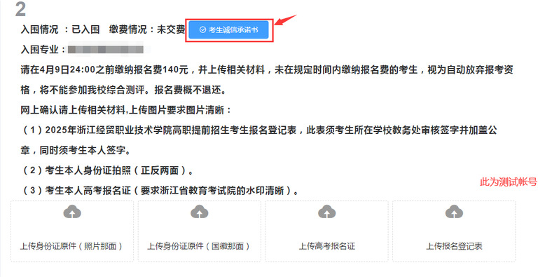 第四步,考生本人上传相关材料,上传材料要求图片清晰。