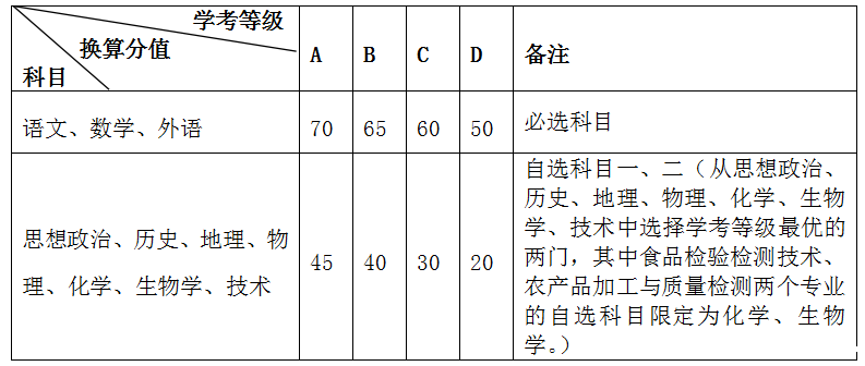 高中学考选择5个科目(语文、数学、外语、自选科目一、自选科目二)进行成绩折算,不同等级换算成相应分值,满分300分。要求考生10门学考科目成绩齐全。考生需在规定的查分时间确认折算成绩。换算方式如下: