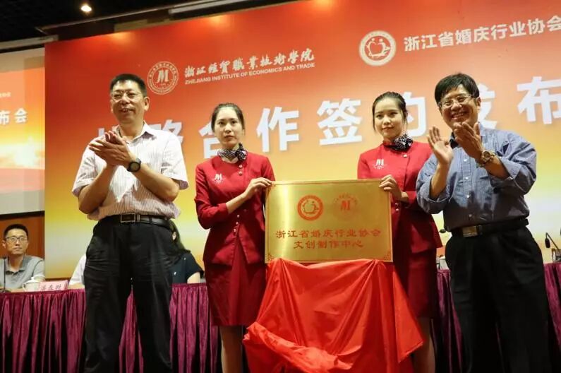 会上,双方签订了校企合作协议书,共同组建了“浙江婚庆文创制作中心”。该中心作为产教深度融合的“校内生产性实训基地”,设在浙江经贸职业技术学院人文旅游系,由校企双方共同运行管理。中心将以社会人才市场和学生就业需求为导向,以行业、协会、企业为依托,承担学生培养、实习就业、校内生产性实训、创业指导与扶持、社会培训及行业大赛等工作。