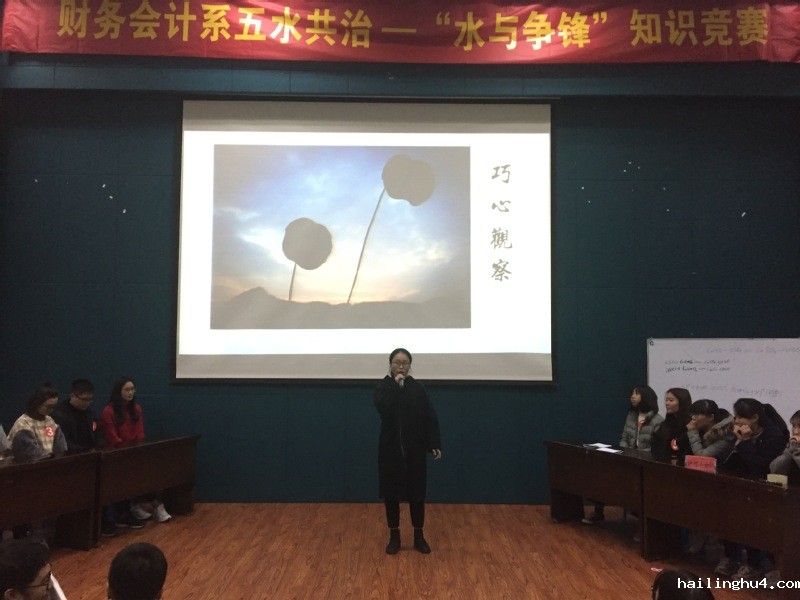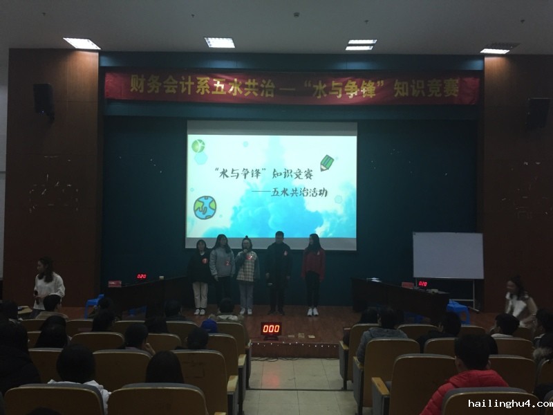 2017年12月11日晚上6点30,财务会计系在图书馆报告厅开展五水共治——“水与争锋”知识竞赛。此次比赛评委有财务会计系辅导员老师们、各系的学习部部长以及系团学干部。