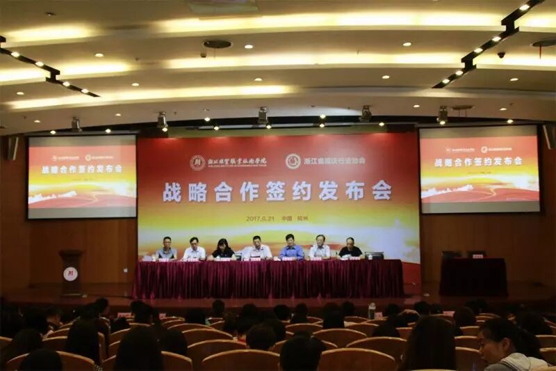 浙江经贸职业技术学院与浙江省婚庆协会战略合作签约发布会在浙江经贸职业技术学院会议中心举行。双方签订了校企合作协议书,共同组建了“浙江婚庆文创制作中心”。该中心作为产教深度融合的“校内生产性实训基地”,设在浙江经贸职业技术学院人文旅游系,由校企双方共同运行管理。