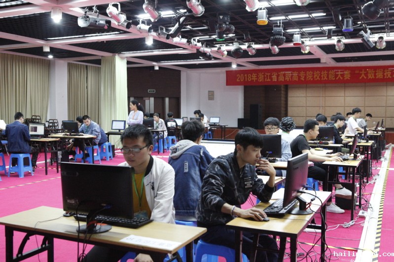 4月23日,2018年浙江省高职高专院校技能大赛“大数据技术与应用”竞赛在浙江经贸职业技术学院举行。来自全省14个队伍的42位选手同场竞技。